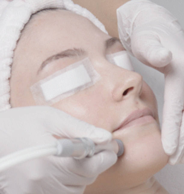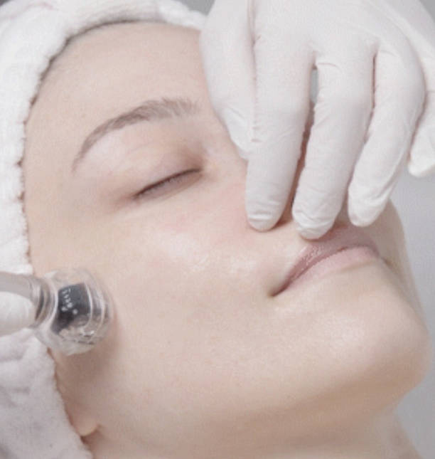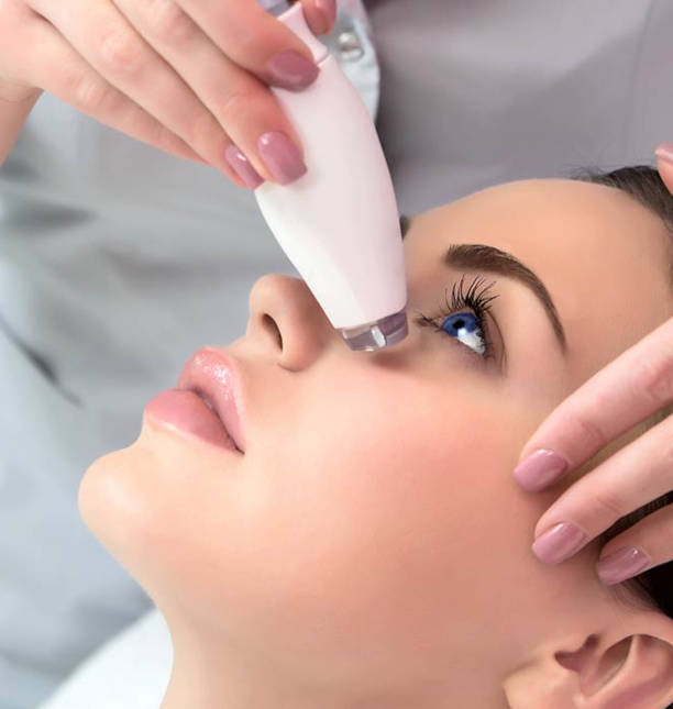 Facial brightening by needle-free injections of hyaluronic acid, vitamins and growth factors deep into the skin.